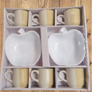 6 Mugs & 2 Trays, Beige and White, Gift Box Packed, Tea/Coffee Set, Microwave Safe