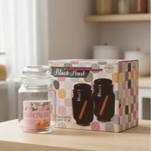 Lumina Black Pearl Exclusive Glass Jar Set – 2 Pieces, Transparent Storage Container with Lid – Kitchen Storage, Multipurpose Organizer